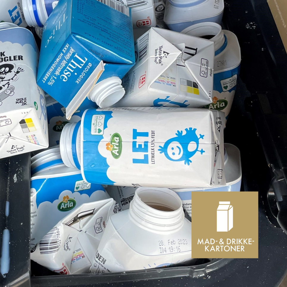 - Mad- & drikkekartoner skal tømmes inden de lægges i beholderen