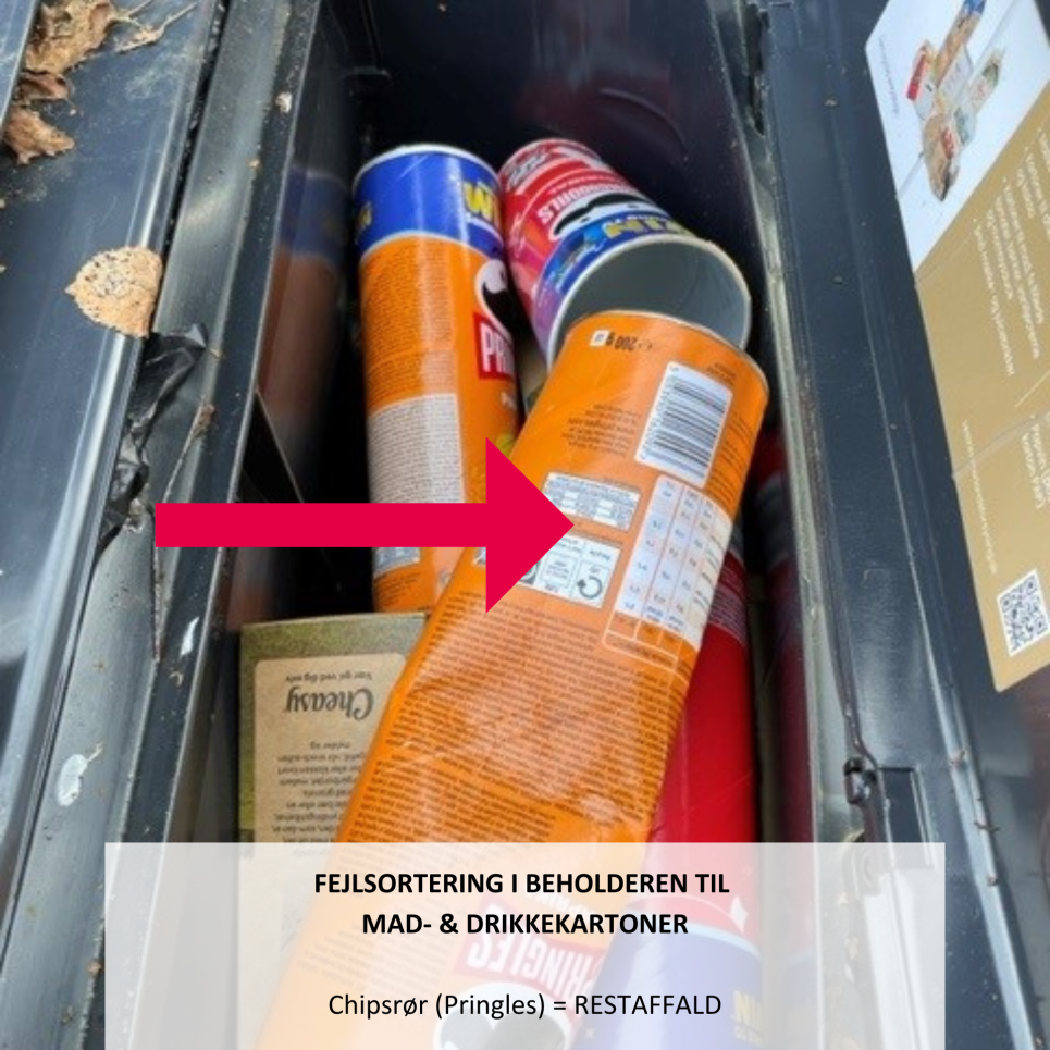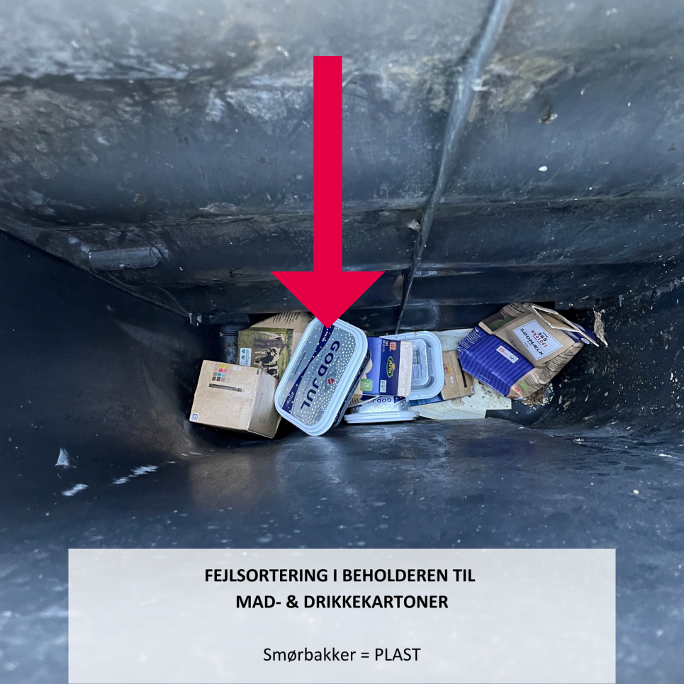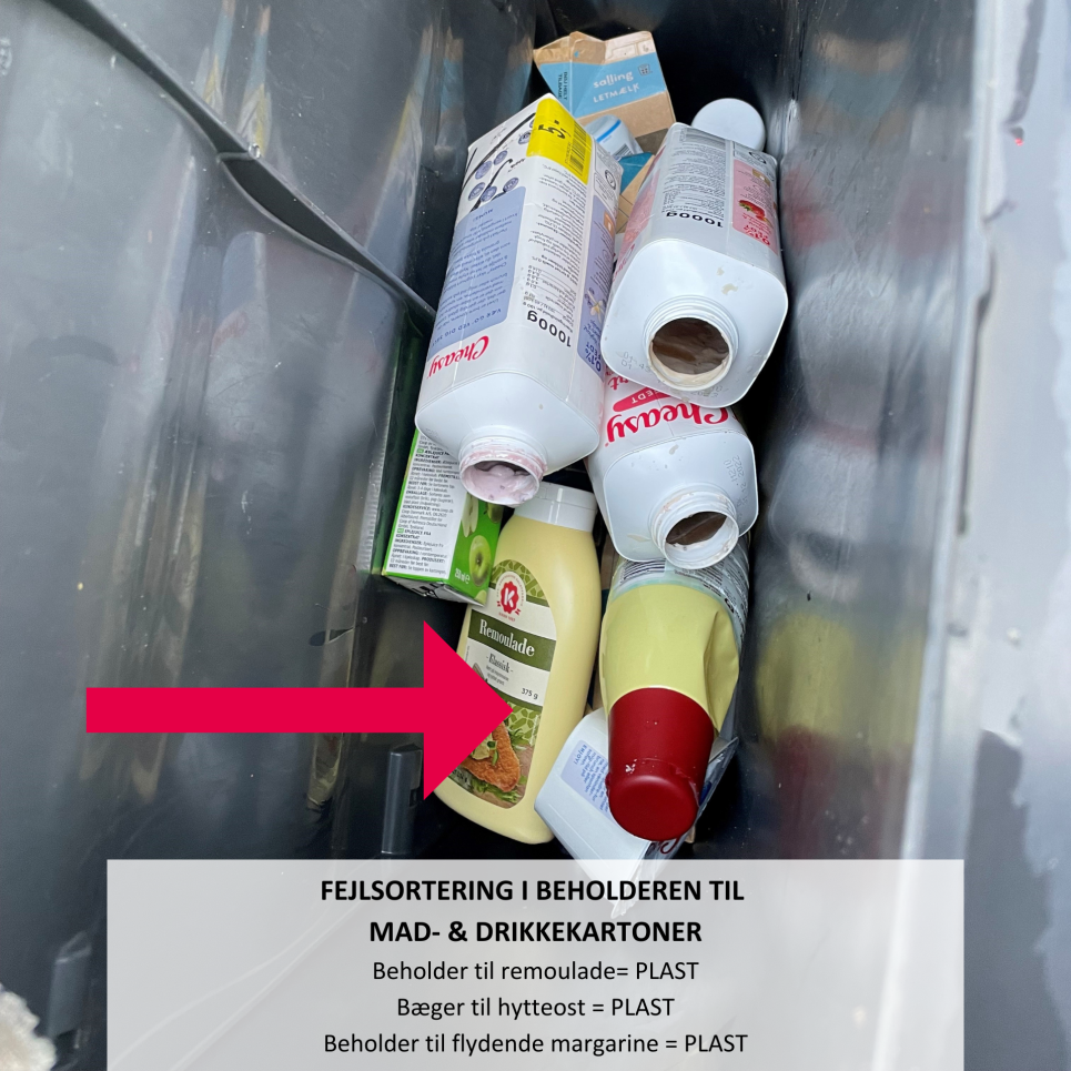 Her kan du se nogle eksempler på fejlsorteringer fundet i beholderen til mad- & drikkekartoner.