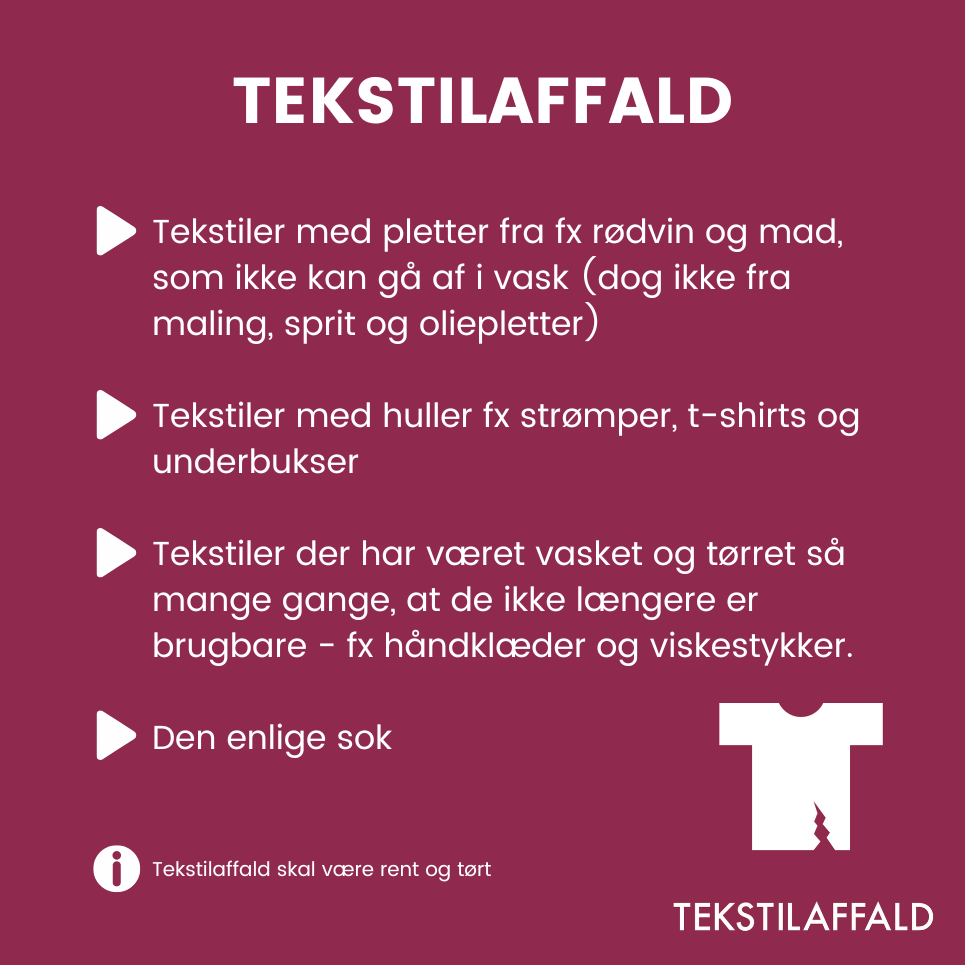 - Husk at tekstilaffald skal være tørt