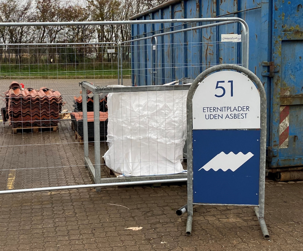 Området til "Eternitplader uden asbest" er indhegnet, og du skal derfor henvende dig til pladsguiden inden aflæsning.